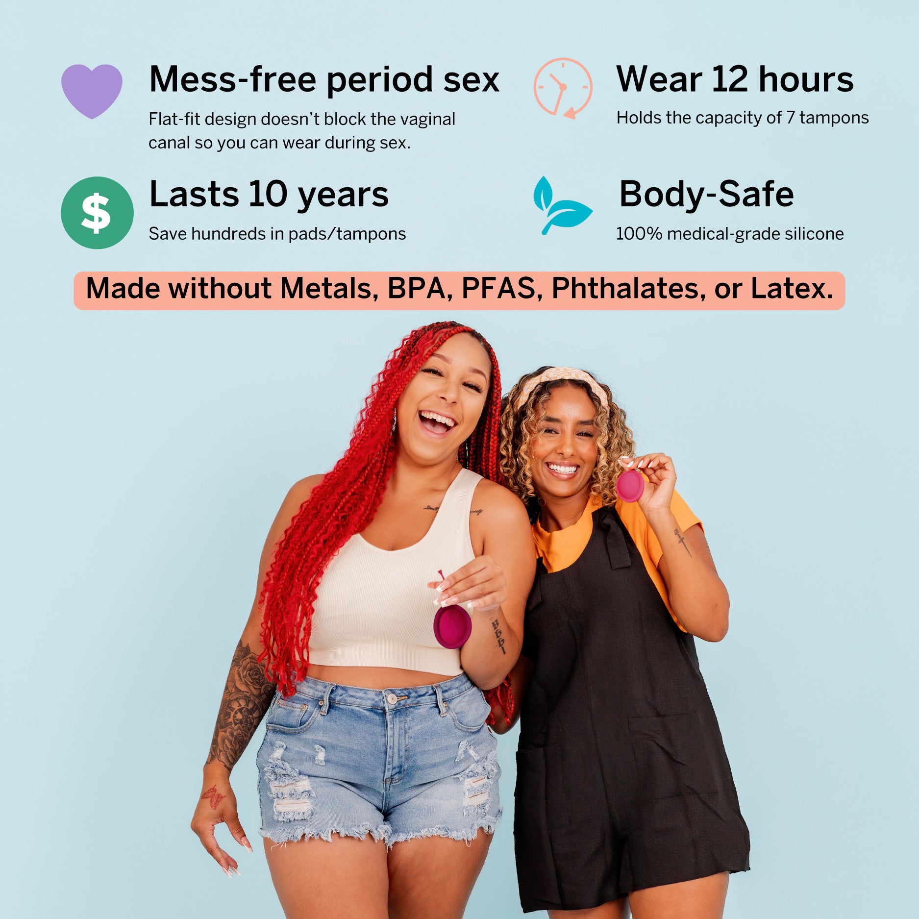 Friend, the next generation of sustainable menstrual products are here! The Pixie Disc is is a reusable menstrual disc that sits at the base of your cervix, not in the vaginal canal like a menstrual cup. The Disc doesn't create a seal, and allows for no-mess period sex. Made with medical-grade silicone, the Pixie Disc lasts up to 10 years - keeping money in your pocket and plastic out of landfills. So why settle for uncomfortable and wasteful period products when you can have a silky smooth, long-lasting, and eco-friendly Pixie Disc?