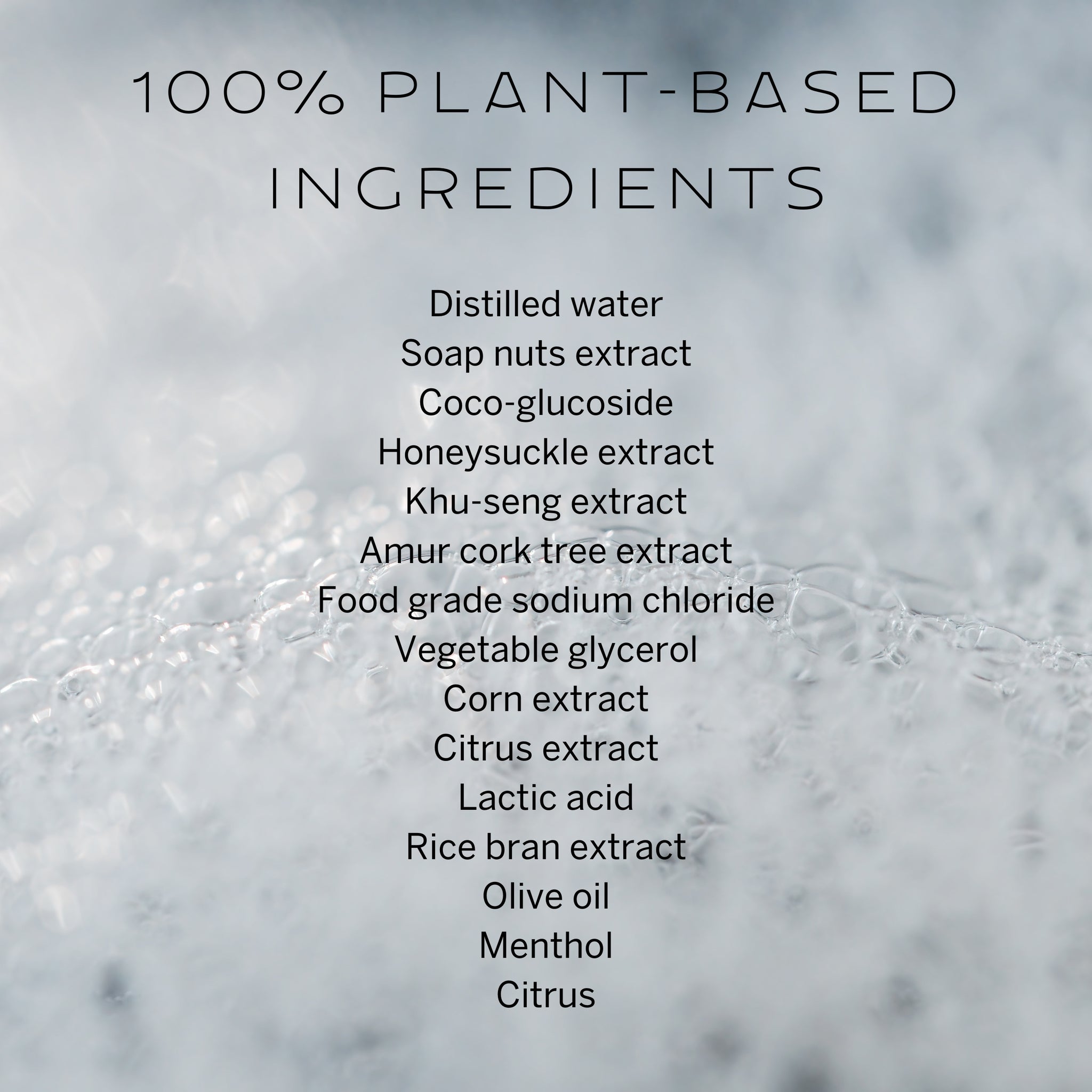 - Soap nuts extract: a cleansing agent that is antimicrobial and anti-inflammatory