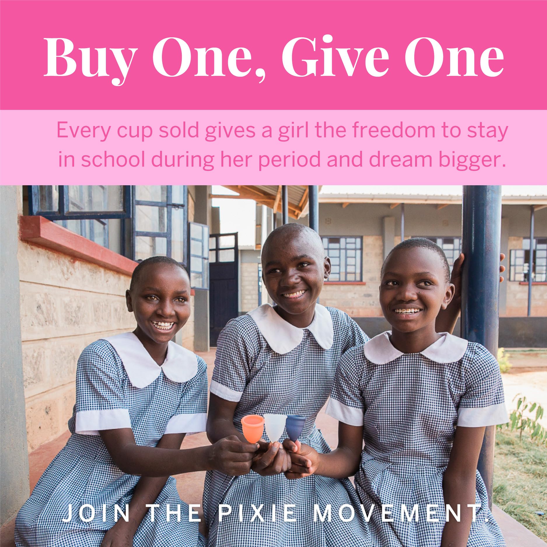 Every time you purchase a Pixie Cup, a cup is donated to a woman in need. Here at Pixie, our goal is for every woman to have access to period products, and you can help make that difference! With help from people like you, we’ve donated 135,000+ Pixie Cups so far! You can read more about our Buy One Give One program here.