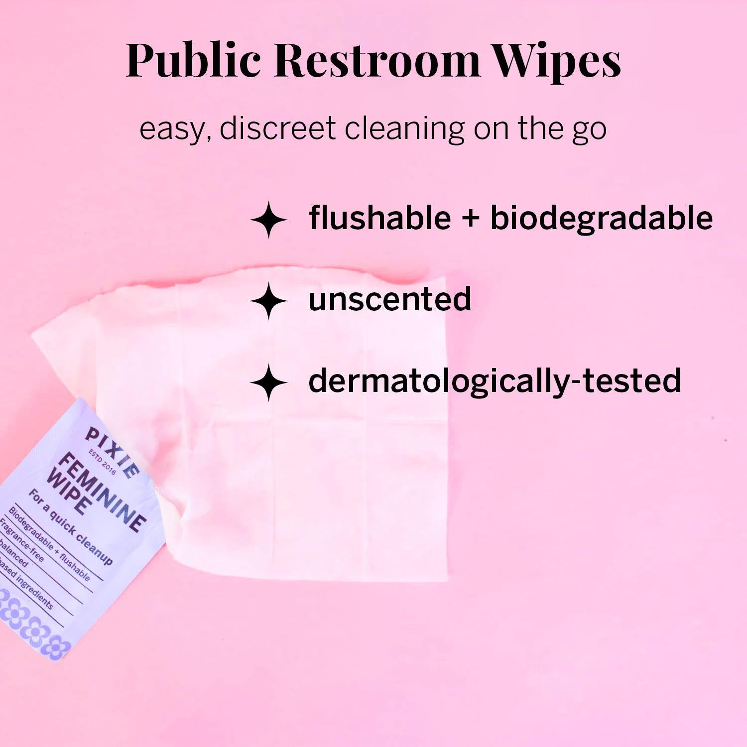 • Pixie Feminine Wipes, disinfecting and perfect for travel or on-the-go refresh.