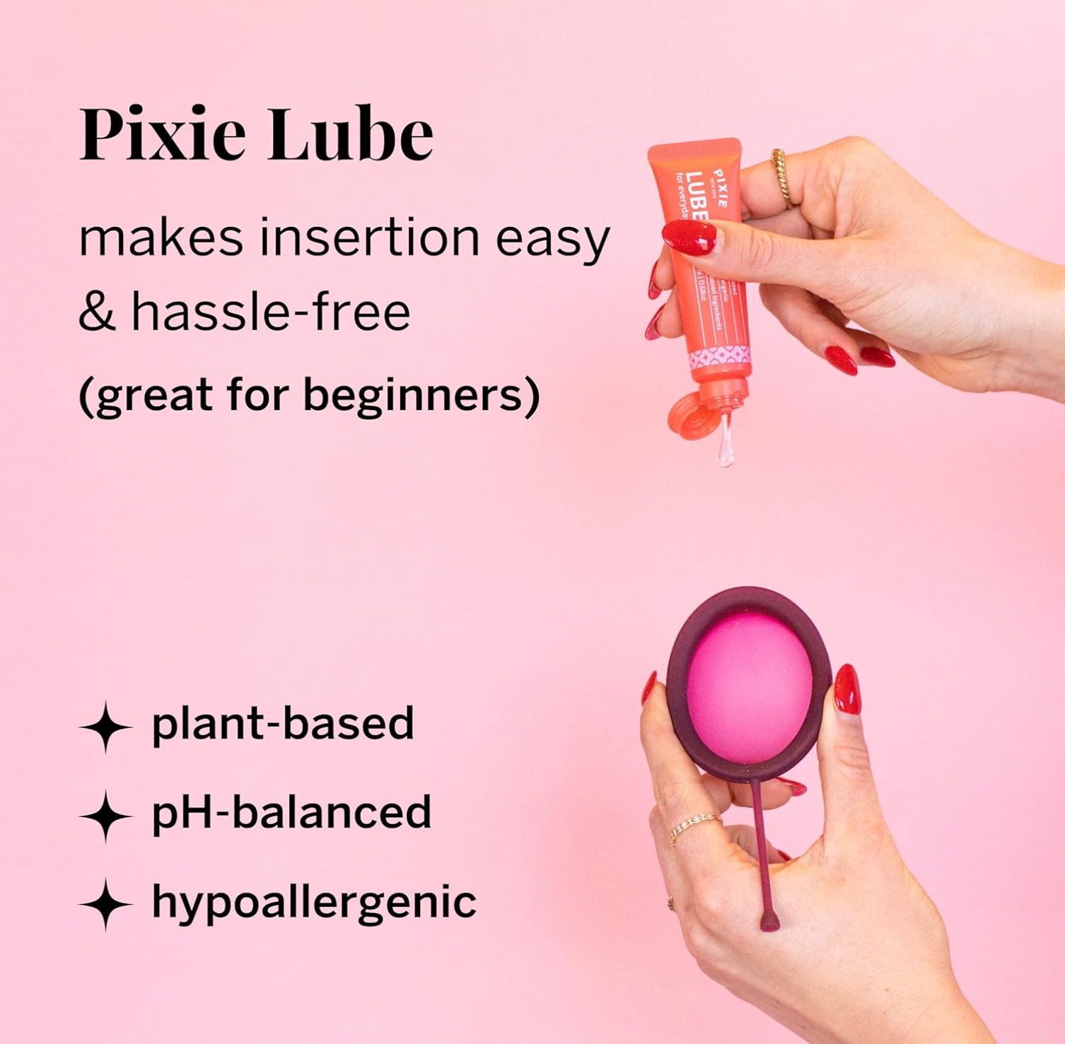 • Pixie Cup Lube, a silky-smooth, water-based lubricant that’s hypoallergenic, fragrance-free, and makes inserting your Pixie Disc a breeze.