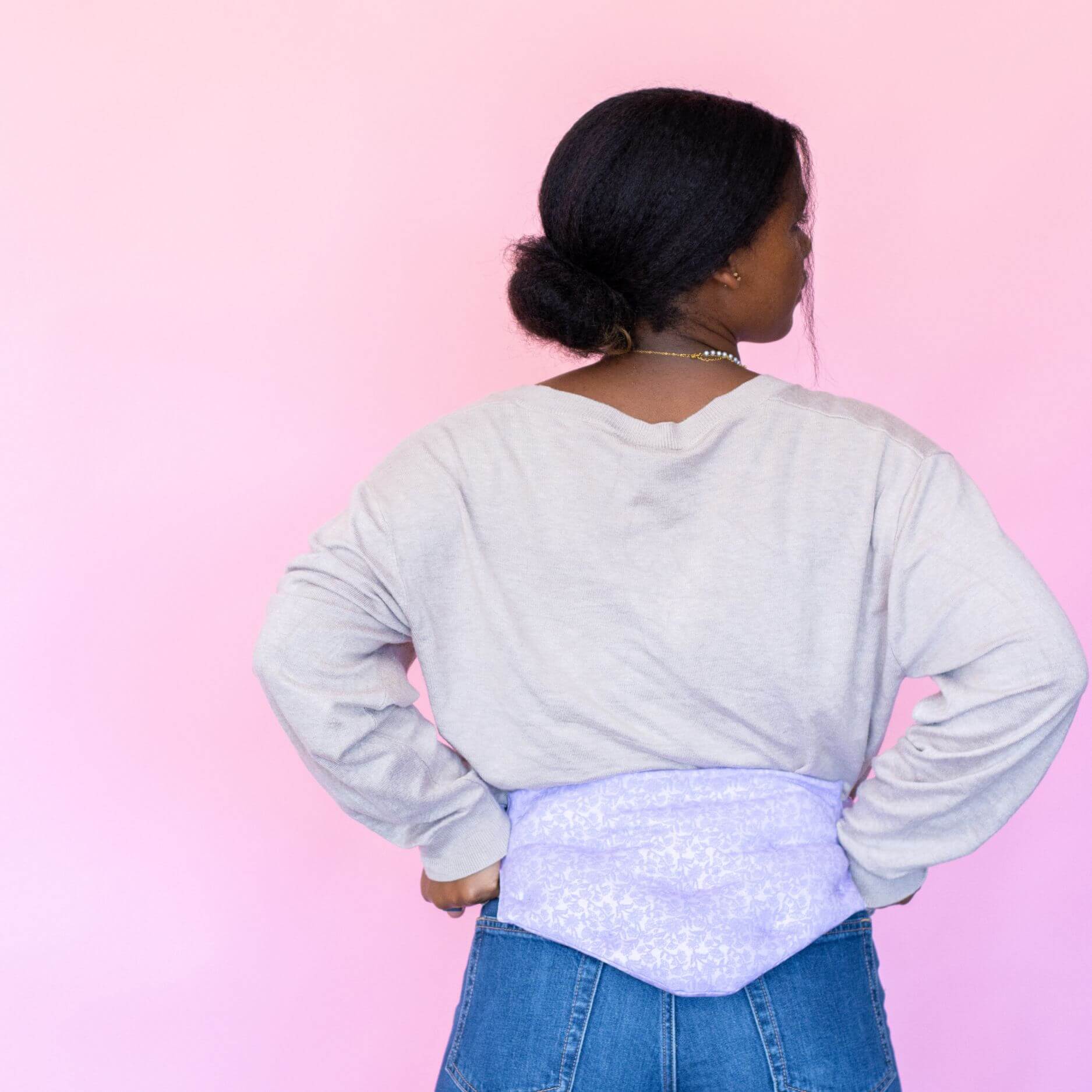 Microwave the TheraPad™ for a few minutes following the instructions, then wrap it around the waist, back, or shoulders for warmth.